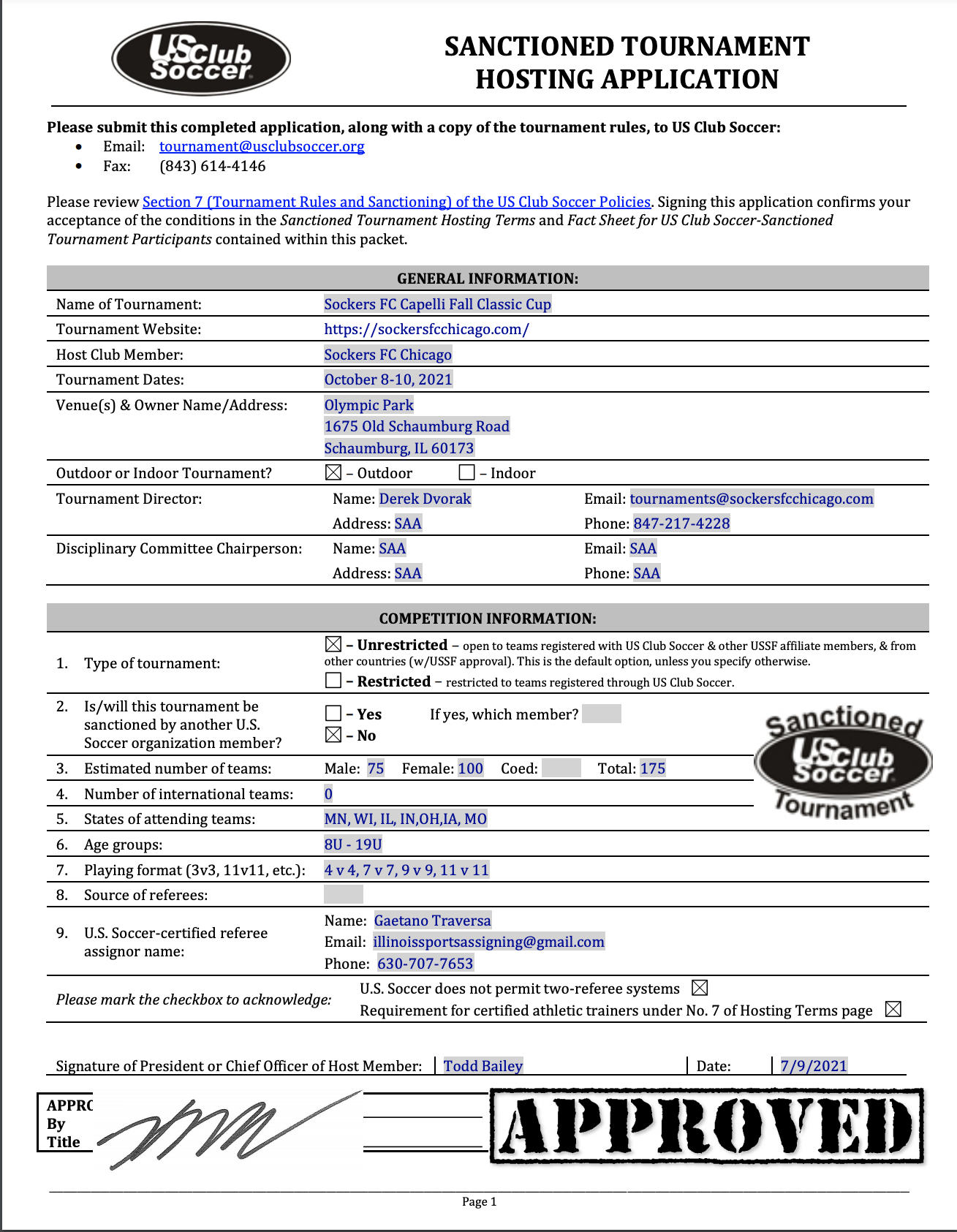 You must send separate email to tournaments@sockersfcchicago.com – by September 18th, 2025 – do not assume coaching request will be read in gotsoccer!